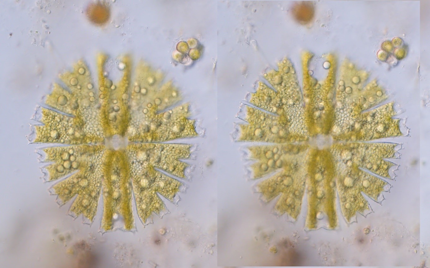 Micrasterias rotata, een voorbeeld van een Sieralg. Deze soort komt vooral voor in helder en voedselarm water. Hij is gevonden in een duinplas ten noorden van Bergen aan Zee.