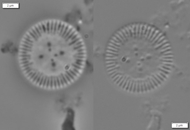 Kiezelwieren maken voor zichzelf doosjes van glas (kiezel) om in te leven. Voor uitwisseling met het water zitten er patronen van spleetjes en gaatjes in het doosje waar de soort aan herkend kan worden. Op deze foto is Pantocsekiella ocellata te zien. Voor het onderzoek is de alg chemisch uit het doosje verwijderd waardoor alleen dat ‘huisje’ nog maar overgebleven is.