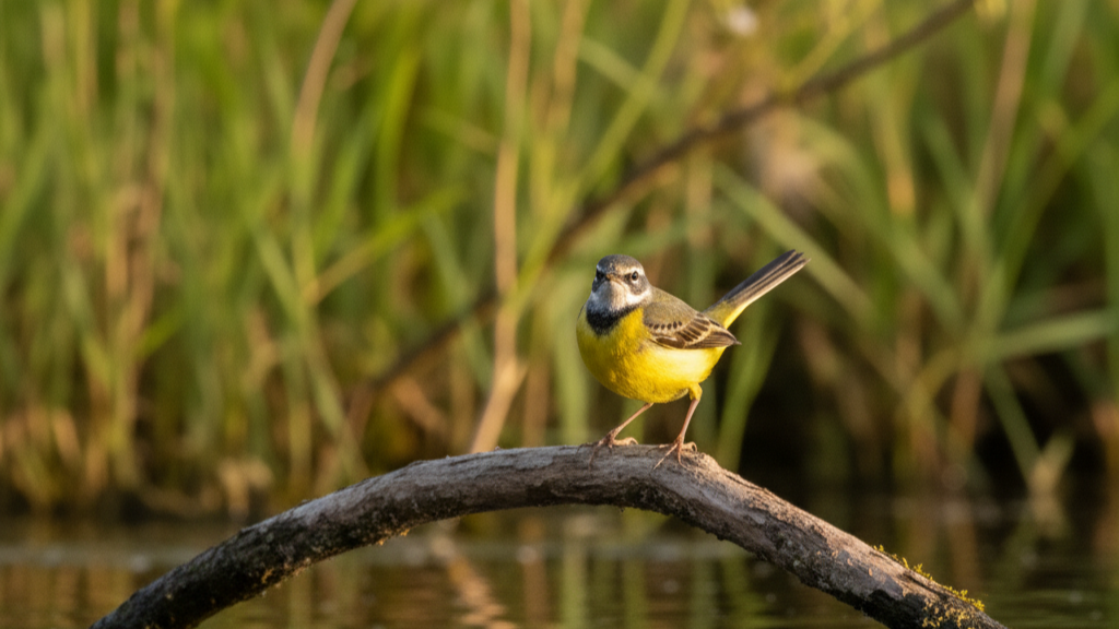 Een vrolijker type is de grote gele kwikstaart. Deze beweeglijke vogel huppelt graag langs oevers, met zijn kenmerkende wippende staart.  Tijdens het inpeilen leek hij soms met ons mee te lopen, alsof hij even wil controleren of we het werk wel goed doen.
