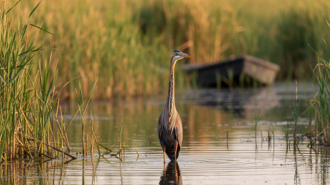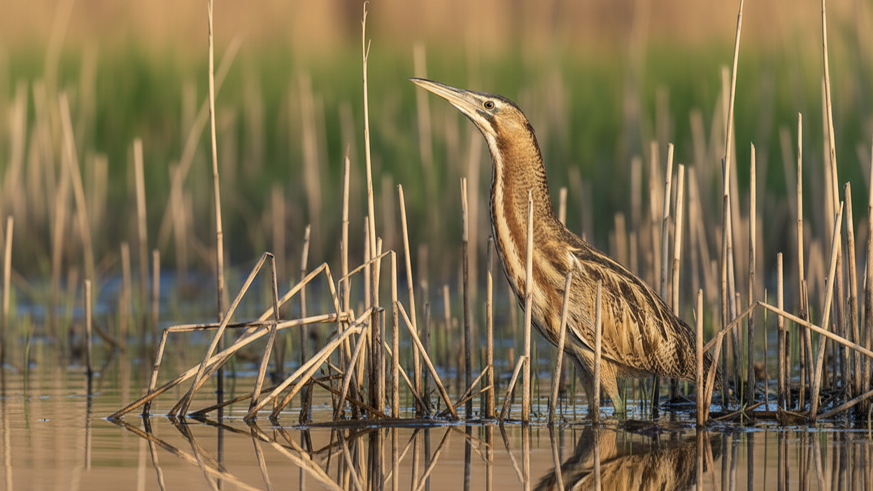 Een nog schuchtere verschijning is de roerdomp. Vaak hoor je eerst een diep, ‘hoemp’-geluid uit het riet komen dat klinkt alsof iemand op een lege fles blaast. Maar heel soms laat hij zich ook echt zien. Volledig gecamoufleerd in het riet, met zijn snavel omhoog, bijna niet van zijn omgeving te onderscheiden. Collega’s Allon en Andy spotten er onlangs nog één bij Callantsoog – een waarneming die je niet snel vergeet.